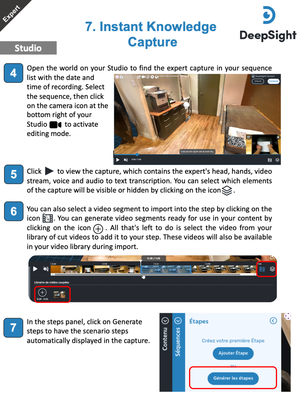 Edition of a knowledge capture (generate steps, make modifications, etc.)